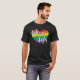 I give wanted to give this a 4 instead of a 5 because these Basic DARK T0shirts run unexpectedly SLIM or Narrow. Which is great if you do not have a potbelly, but I have a paunch. It isn't the shirt's fault that I've got a beer belly. The design and shirt itself is a quality cotton shirt. The color is more of a deep purple, but still a very pretty color. The Basic DARK T-shirts run a bit SLIMMER than the Basic Ts. The neck is a fraction narrower (or seems to be narrower) also. I'm a paunchy middle-aged woman and my neck is 12 inches (31cm) thick and the neckline fell about the same as in the photo of the man, and I had the desire to tug it a bit. So if you're a thick necked man or like loose shirts, be aware these are slimmer shirts. Once I get rid of my lockdown paunch it'll look great. The shirt washed well in cold water with no apparent bleeding. We don't have a dryer, so it hung dry. Did not shrink. Love the colors and the design. The design looks smaller on my shirt than it does on the model on-line. But still, it looks good on the shirt. The printing looks as it does on the model, just the size seems fractionally smaller. Washed garment in cold water, hung dry and design appeared unaffected.