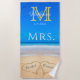Mrs. Beach Wedding Hearts in Sand Family Monogram Beach Towel