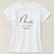 Modern and casual chic black calligraphy script "Mrs." women's wedding shirt, can be personalised with the bride's new married last name and wedding date. Perfect for the newly wed to wear at the honeymoon and beyond!