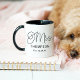 This chic Mrs mug features beautiful flowing calligraphy script with a custom last name in bold uppercase and an established wedding date, all on a crisp white background with a sleek black handle and interior. The elegant script paired with the bold black contrast creates a modern yet romantic look. The last name and date are fully editable for a personalized keepsake. A stunning gift for the newlywed, bride, bridal shower, or wedding anniversary.