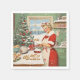 In a cosy, snow-covered kitchen, Mrs. Claus is captured in the midst of holiday baking. Dressed in a festive red dress with fur-trimmed sleeves, and a matching apron, she smiles warmly as she prepares a fresh batch of cookies. The scene is filled with Christmas cheer, complete with a beautifully decorated tree adorned with candy canes and red ornaments, while snow gently falls outside the window, adding to the magical atmosphere of the season.