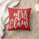 This adorable holiday throw pillow says "Mrs. Claus" in a modern white handwritten script. Choose any colour background.