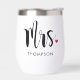 Custom thermal wine tumbler features Mrs in modern black script with cute red heart accent and your married last name. Perfect gift for a bride-to-be, for a newlywed couple, or to give your sweetie on Valentine's Day! Visit our store or collection below for the Mr tumbler that coordinates.