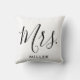 Mrs. Modern Elegant Script Monogram Wedding Throw Cushion. A simple and elegant throw cushion pillow that features Mrs. with your custom married last name. A great gift for a newly married couple!
