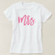 This shirt design is perfect for the newly married bride and features "Mrs." in a bright hot-pink brush script.