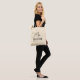 The design shows an elegant tote bag in black and creme. A beautiful unique "mrs" text in whimsical calligraphy at the top and a customisable surname and date at the bottom. The design is extremely unique and classic and will be an elegant item to give any bride or newlywed as a gift