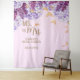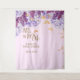 A boho chic, floral, simple, modern, elegant and classy bridal shower backdrop with a "Ms to Mrs" title, featuring a rustic arch of lilac and hydrangeas in purple and blue hues, with gold butterflies (this is a digital effect, not real foil), modern calligraphy script and typography in a gold hue. A chic, timeless design that combines traditional, formal wedding design with modern script calligraphy and a trendy layout.