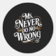 Ms Never Do No Wrong Funny Confident Quote Classic Round Sticker