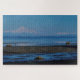Mt. Baker. An original piece depicting Mt. Baker as seen from Maple Beach in Point Roberts, Washington. Features snow covered Mt. Baker as seen across the shallow waters of Boundary Bay. A blue heron searches the outgoing tide.