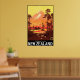 Vintage travel poster reproduction of Mt Egmont New Zealand. Mountain landscape with trees in foreground on a retro style. A restored reproduction & great wall art.