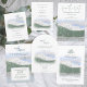 Evergreen forest, falling snow, and snow-covered Mt. Rainier is beautiful for a winter wedding in Mt. Rainier National Park, or at a venue with a mountain view. Pair with other outdoorsy pine needle wedding stationary in this collection. Watercolor Mt. Rainier and blue sky artwork is versatile for light green & dusty blue color themes.