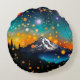 Stunning painting of Mount Rainier in Washington state with a swirly, bright evening sky and fireflies. Original digital painting.