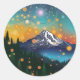 Mt. Rainier w Evening Starry Sky and Fireflies Classic Round Sticker