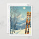 Hello from the snowy mountains of Mt. Mount Spokane, Washington! We hope you're having a wonderful ski vacation. This postcard features a gorgeous blue-grey mountain landscape with retro ski boards in an orange tribal pattern.