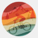 This retro-style MTB bike sticker depicts a cyclist riding through the mountains, capturing the thrill and excitement of off-road biking. The design features a vintage mountain bike with rugged tires and a sturdy frame, along with a bold and colourful mountain landscape in the background. The cyclist is shown in motion, leaning into the turn and fully immersed in the ride. Whether you're a serious mountain biker or simply enjoy the aesthetics of retro cycling, this sticker is a must-have accessory for your bike or gear. It's perfect for adding a touch of personality and style to your equipment, while also celebrating the adventurous spirit of mountain biking. So why not show off your love for the sport with this awesome MTB sticker?