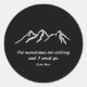 This round sticker features a bestselling & unique mountain silhouette design that looks like the mountains are covered in snow, on top of a black background.  The popular quote from Naturalist John Muir:  'The mountains are calling and I must go.' is underneath.  Show your love for the mountains!  There are many different sticker shapes to choose from.