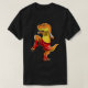 I give wanted to give this a 4 instead of a 5 because these Basic DARK T0shirts run unexpectedly SLIM or Narrow. Which is great if you do not have a potbelly, but I have a paunch. It isn't the shirt's fault that I've got a beer belly. The design and shirt itself is a quality cotton shirt. The color is more of a deep purple, but still a very pretty color. The Basic DARK T-shirts run a bit SLIMMER than the Basic Ts. The neck is a fraction narrower (or seems to be narrower) also. I'm a paunchy middle-aged woman and my neck is 12 inches (31cm) thick and the neckline fell about the same as in the photo of the man, and I had the desire to tug it a bit. So if you're a thick necked man or like loose shirts, be aware these are slimmer shirts. Once I get rid of my lockdown paunch it'll look great. The shirt washed well in cold water with no apparent bleeding. We don't have a dryer, so it hung dry. Did not shrink. Love the colors and the design. The design looks smaller on my shirt than it does on the model on-line. But still, it looks good on the shirt. The printing looks as it does on the model, just the size seems fractionally smaller. Washed garment in cold water, hung dry and design appeared unaffected.