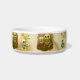 This is a heavy, durable bowl decorated with Tibbies of many colors, the perfect size for hungry/thirsty Tibs. The design is interesting and printing clear.