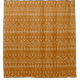 This shower curtain features a geometric mudcloth pattern in white on burnt orange or rust.