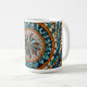 This beautiful ceramic mug features a stunning mosaic-inspired design with intricate patterns of vibrant blues, warm oranges, and delicate beige accents. The captivating abstract artwork wraps gracefully around the mug, adding a touch of artistic elegance to your everyday routine. Perfectly sized for your favourite coffee, tea, or hot beverage, this mug combines practical functionality with decorative charm, making it an ideal gift or a delightful addition to any home or office décor. Bring a splash of creativity to your daily sips!