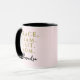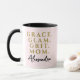 Personalised feminine chic stylish ceramic combo mug with custom name in elegant black script calligraphy handwritten and mum mummy related quote saying phrase in classy gold typography. The mummy attributes are proudly displayed GRACE, GLAM, GRIT. Simple monochromatic premium look minimalist design in pretty girly fashionable candy pastel pink. A beautiful modern drink ware to celebrate motherhood and femininity. A thoughtful custom gift under 15 dollars for mothers. Suitable for many occasions and celebrations, like birthday, Mother’s Day, Christmas, anniversaries, or a friendship gift just because in a mum group.