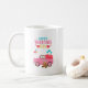 Happy Valentine's Day cute pink truck, hearts, and a teddy bear double-sided design on a mug.