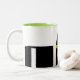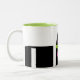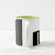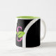 Abstract black and white logo mug with green trim. Makes a great gift for anyone.