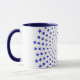 Blue stars spiral around a clear center point. Small stars in center to larger stars at outer edge.