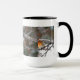 This mug features two photos of a cardinal sitting on a branch with snow falling among cherry stems. Photos were taken by Photographer Michael Bryan in northeast Oklahoma on a 12 degree day with snow flakes falling.