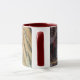 A ringer beverage mug showing a portrait image of a magnificent male Malayan Tiger (Panthera tigris jacksoni). This beautiful orange and black-striped feline is standing in bright sunlight and is digitally superimposed against fantastical background of celestial and fractal imagery. The cat is gazing intently off to the viewers right.