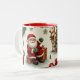 This is a pretty Christmas mug. It has pictures of Santa Claus and Rudolph, and is decorated in red on the inside, making it cute.