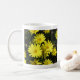 Yellow daisies with orange centres in background of dark foliage, adorn each side of the mug. Personalise with user's name.