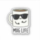 Mug Life Funny Mug Pun features a cute coffee mug looking cool in his sunglasses living the mug life. Perfect pun gift for family and friends who love cute coffee mug puns.