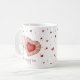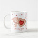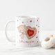 Valentine's Day Cute mug featuring an adorable baby bear holding a sweet heart shaped cookie, little hearts around, all in white, red and beige. Easily personalise the text. - Kate Eden Art