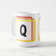 Initial in bold black letter is framed by three squares of diminishing sizes in red, orange and yellow. Same design on both Sides. Personalise with your initial.