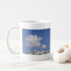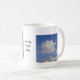 Mug white snow mountain and merry clouds before blue sky. Winterfeeling while drinking: -)