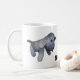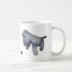 Dog doll created in crochet. Grey and white stripes, black eyes, pink tongue. Image of dog on each side of mug facing centre. At bottom centre, personalise a name.