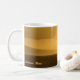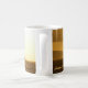 A classic beverage mug showing a hi-key image of a catamaran sailing on the golden shimmering ocean waters at sunset. The left side of the image contains dark clouds and the island of Lanai and the right portion shows the sun shining down brightly on the vessel. Taken in the town of Lahaina, on the island of Maui in Hawaii.