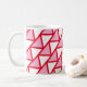 Pink triangles range in diagonal rows, covering entire surface. Centre of triangle is pink, with a red border on a white background.