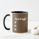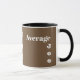 This two-tone mug is brown with white text. Text reads "Average Joe". Inside shown in black with black handle. Customise to your liking or buy as shown.