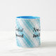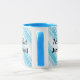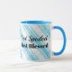 This two-tone mug is photo print of sky blue plaid over white. Inside shown in sky blue with sky blue handle. Text in script of "Not spoiled just blessed" on both sides of mug. Customise to your liking or buy as shown.