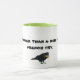 Comical mug with message Be happier than a bird with a french fry on front and black bird.