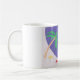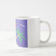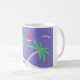 This classic white mug is designed with a beach or island scene of palm trees, umbrellas, blue water, and a red sailboat.