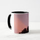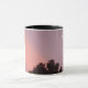 mug with original photo of sunset, twilight, pink sky, and moon