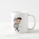 Mug with ringing alarm clock and cute kid