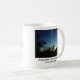 Mug with Scripture and sunset framed in trees.