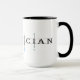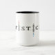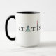 Mug with "Statistician" logo, which incorporates a probability density function and three boxplots with whiskers and data outliers.
