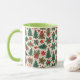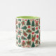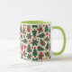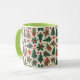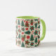 This is a Christmas mug. It has a sophisticated design with a harmonious combination of red and green. Have a happy Christmas.