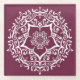 This white mandala sits on a dark red-violet background. The colour is deep and sophisticated. Part of the Jarn Mandala Collection.