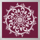 This white mandala sits on a dark red-violet background. The colour is deep and sophisticated. Part of the Payon Mandala Collection.